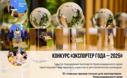 Центр поддержки экспорта Краснодарского края ведет прием заявок на участие в региональном конкурсе «Экспортер года - 2025»