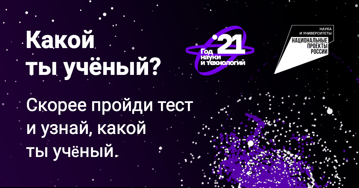 2021 год объявлен в РФ Годом науки и технологий, в течение которого будут проходить мероприятия с участием ведущих деятелей науки, запускаться образовательные платформы и конкурсы для всех желающих. Одним из них станет карьерный тест «Какой ты ученый?»