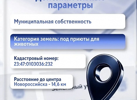Представляем инвестиционную площадку, идеально подходящую для запуска профильного объекта в сфере помощи животным. Это решение для тех, кто ищет понятные условия размещения, стабильный потенциал для дальнейшего развития и возможность стать частью важной социальной миссии.