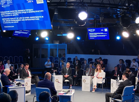 Начали рабочий день на ПМЭФ-2023 с участия в круглом столе на тему «Повышение качества жизни в городах: инвестиции в городскую среду и инфраструктуру».