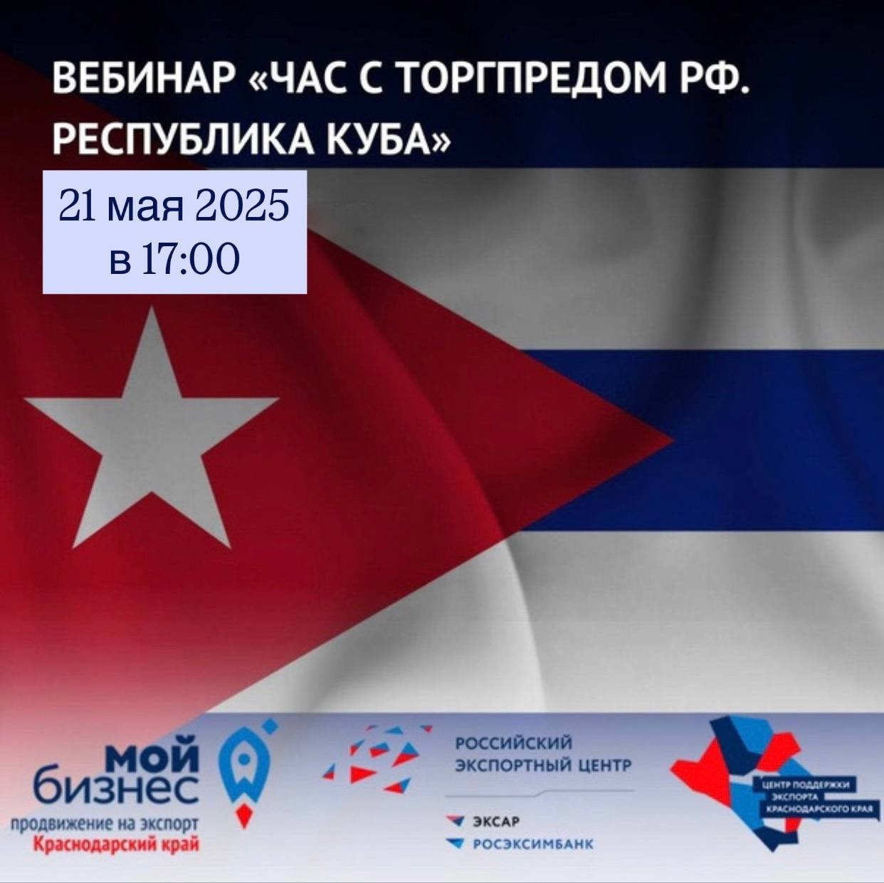 Центр поддержки экспорта Краснодарского края приглашает на вебинар "Час с Торгпредом. Республика Куба"