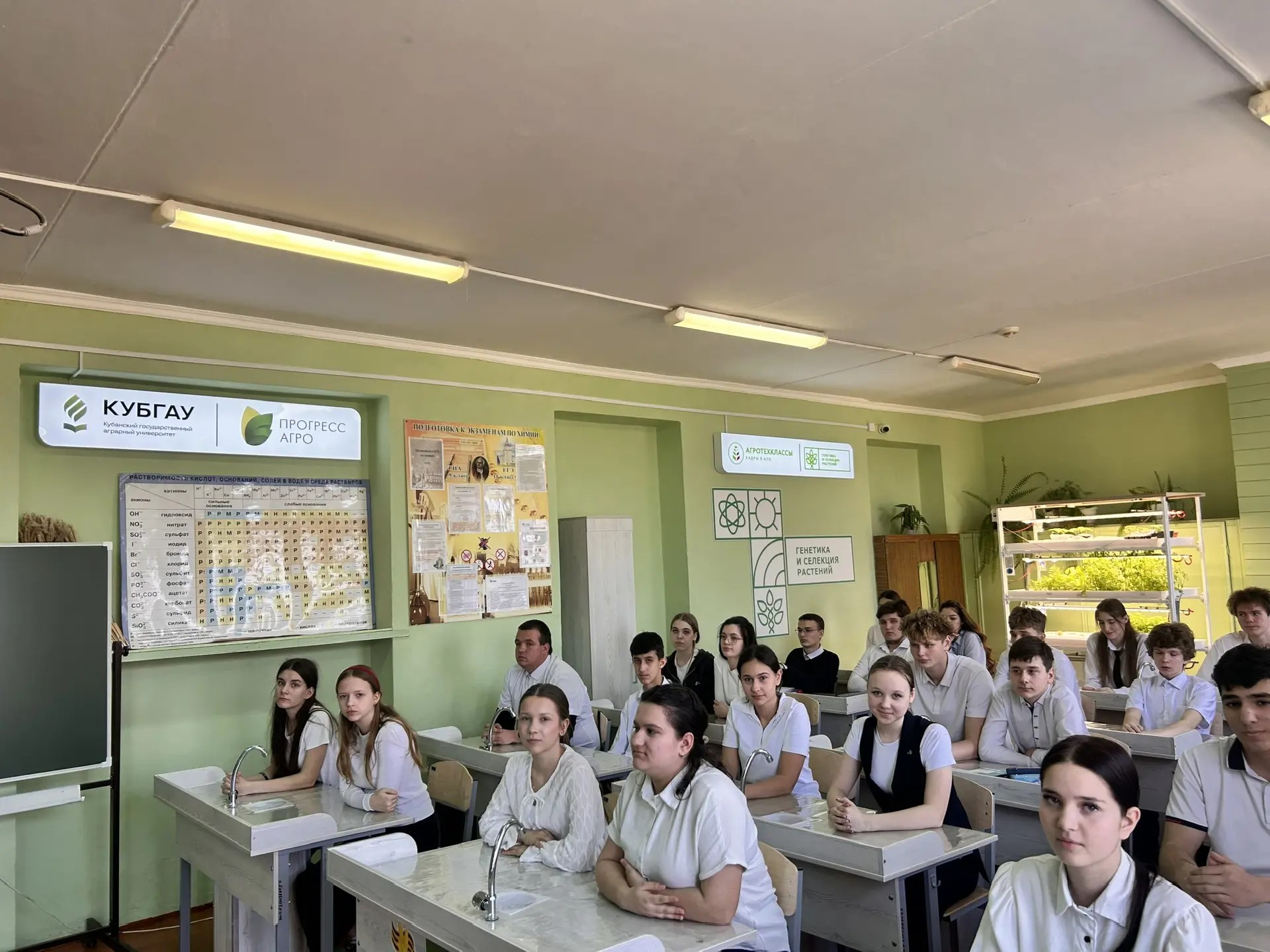 Ассоциация «Народный фермер Кубани» с начала года регулярно посещает такие классы в регионе. 10 апреля вместе с Кубанским государственным аграрным университетом они встретились с учениками 10–11 агроклассов в новороссийской школе №24 имени генерала Н.Н. Раевского (станица Раевская). До этого побывали в Усть-Лабинском и Тимашевском районах.
