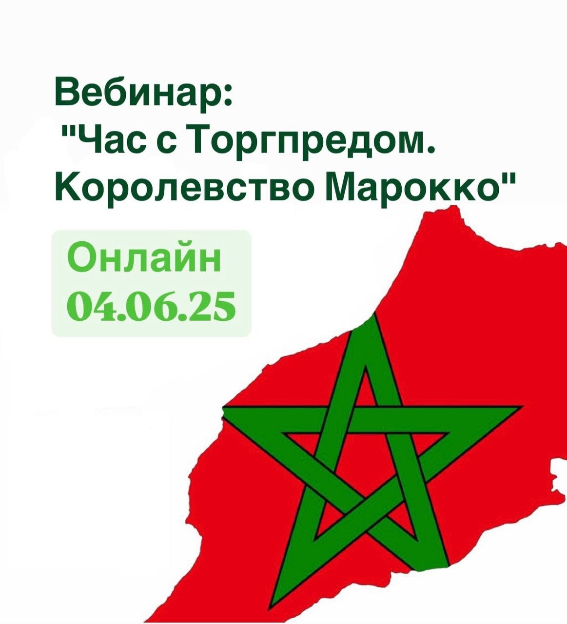 04.06.2025 в 12:00 состоится вебинар "Час с Торгпредом. Королевство Марокко"