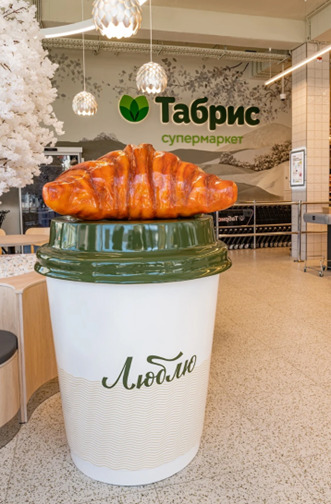 Новый супермаркет сочетает в себе современный дизайн и приятную атмосферу, лаконичное пространство и широкий ассортимент товаров.