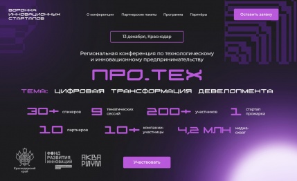 Открыта регистрация на крупнейшую ИТ-конференцию региона — «ПРО.ТЕХ: цифровизация девелопмента»!